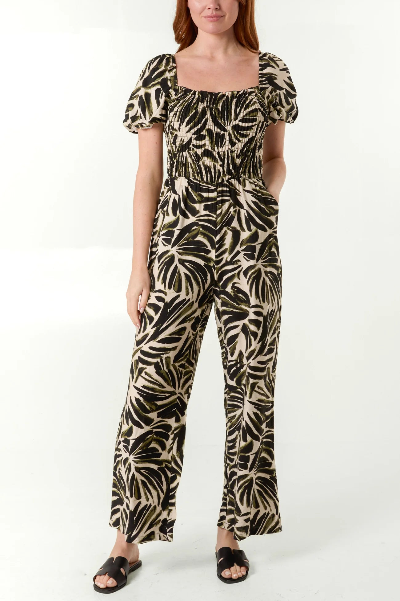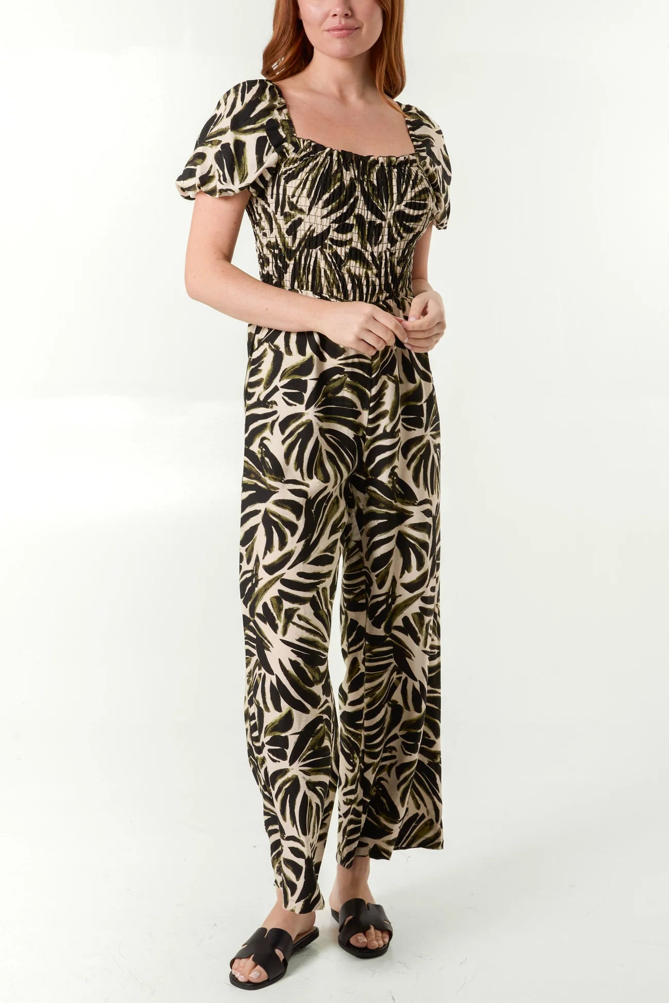 This Leaf Print Puff Sleeve Jumpsuit is the perfect combination of style and comfort. The puff sleeves add a touch of elegance, while the leaf print adds a playful and unique touch. This jumpsuit is made with high-quality materials, ensuring durability and comfort for all-day wear. Perfect for any occasion, this jumpsuit will make you stand out in a crowd.